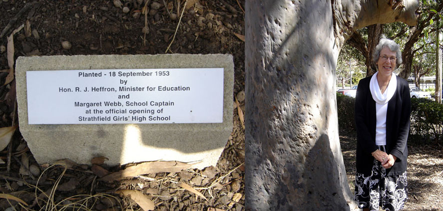 September is the month to commemorate at SGHS. In 1953, a tree was planted to commemorate the founding of the school. The principal at the time was Louise Woodhouse and the school captain was Margaret Webb. To celebrate the Golden Jubilee of the school in September 2003, another tree was planted by the principal Noel Bishop with the aid of Margaret Pople (née Webb). Click here to see the first plaque and Margaret. On 19 September this year a plaque was unveiled for each of these trees. Margaret did the honours for the first tree and Noel Bishop for the second. We are very grateful to Margaret for coming all the way from Port Macquarie for the occasion. We have Monica Foggin (née Harvey) to thank for obtaining the tree plaques for the FSSA. Click here to see the second plaque and Noel Bishop unveiling it. Noelene Doney (née Edmond) was very disappointed at the 50 year celebrations to find there was no portrait of Louise Woodhouse at the school. The FSSA took up her idea and thanks to the efforts of Elaine Norton (née Algie) and her husband John, we were able to hang a portrait of the founding headmistress of SGHS on the wall above the doors to the hall. Bruce Woodhouse, grandson of our Louise Woodhouse, dedicated this gift to the school from the FSSA. Noel Bishop accepted our gift, saying that the school is always seen as belonging to Louise Woodhouse so that all other principals are caretakers striving to keep up her standards. Click here to see the portrait on the wall.