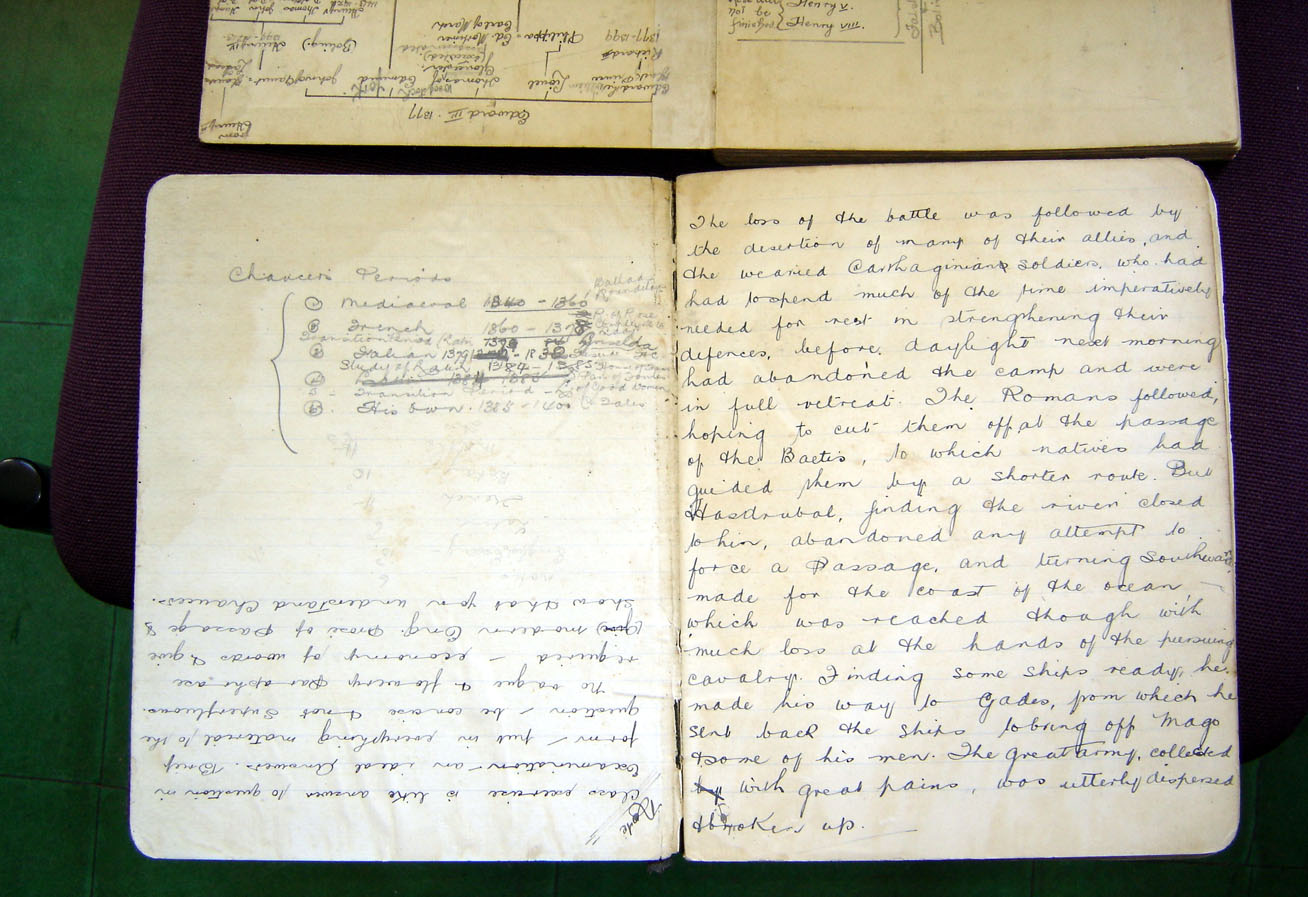 We are very grateful to Noelene for instigating and donating towards, the acquisition of such a portrait, and for coming all the way from Tottenham for the day, as well as bringing her aunt, Marie Robey (née Preston) who was a student at HIHS in the late thirties when Mrs Woodhouse was headmistress there. This commemorative morning was organised by Deirdre Turner and Margaret Boucher, and was attended by 18 people, welcomed by Monica Foggin, our president. After the presentations we enjoyed morning tea and reminisced. Bruce had also brought two exercise books filled with notes by his grandmother from her university student days about 90 years ago. Click here to see the books.